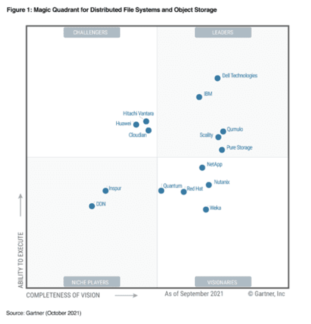 We are very excited to share that Pure Storage has been positioned as a Leader in the new Gartner Magic Quadrant for Distributed File Systems and Object Storage. We believe this recognition, along with being named as a Customers’ Choice for File Systems and Object Storage in the March 2021 Gartner Peer Insights ‘Voice of the Customer’, is a direct reflection of our dedication to bringing innovations and solutions that meet our customers’ modern data challenges.