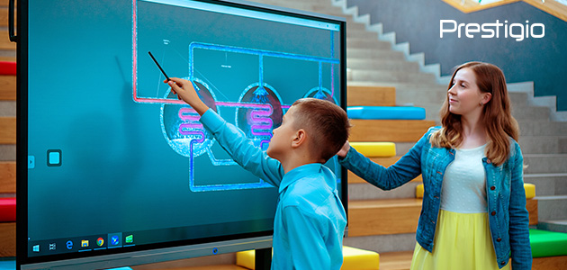 The Prestigio Multiboard interactive screen combines the functions of a computer, traditional blackboard, electronic projector, flipchart and plasma screen. The bright screen of the device is visible in any lighting, and the sensor supporting up to 20 points of simultaneous touch ensures comfortable collaboration in the classroom. Moreover, pre-installed versions of Windows 10 Pro, Android, and specialised apps provide easy integration with other devices.