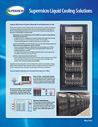 Super Micro Computer, Inc. (Nasdaq: SMCI), a global leader in enterprise computing, storage, networking, and green computing technology, is making available a range of liquid cooling solutions that reduce costs and allow the most demanding applications to run with less jitter and at faster CPU frequencies. Working with customers, Supermicro will design, implement and test the latest liquid cooling technologies at the rack level, ensuring a quick and seamless installation in customers' data centers worldwide. Customers who implement a liquid cooling solution can improve datacenter PUE and TCO by over 40% on power costs.